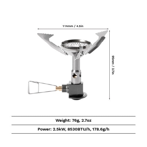 The Polaris stove features a built-in micro-regulator to deliver a consistent 2.5 kW flame, even when temperatures drop or your canister runs low. Weighing just 76g, this pocket-sized powerhouse guarantees a hot meal when you need it most.