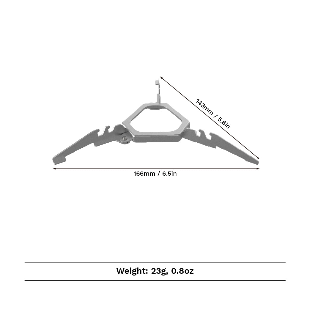 Der ASH Titan-Gaskartuschenständer sorgt für sicheren Halt auf unebenem Gelände und hält Ihren Kocher stabil, ohne dabei unnötig aufzutragen. Mit einem Gewicht von nur 23 g ist er der perfekte ultraleichte Begleiter für Rucksacktouren, alpine Expeditionen und minimalistische Abenteuer.