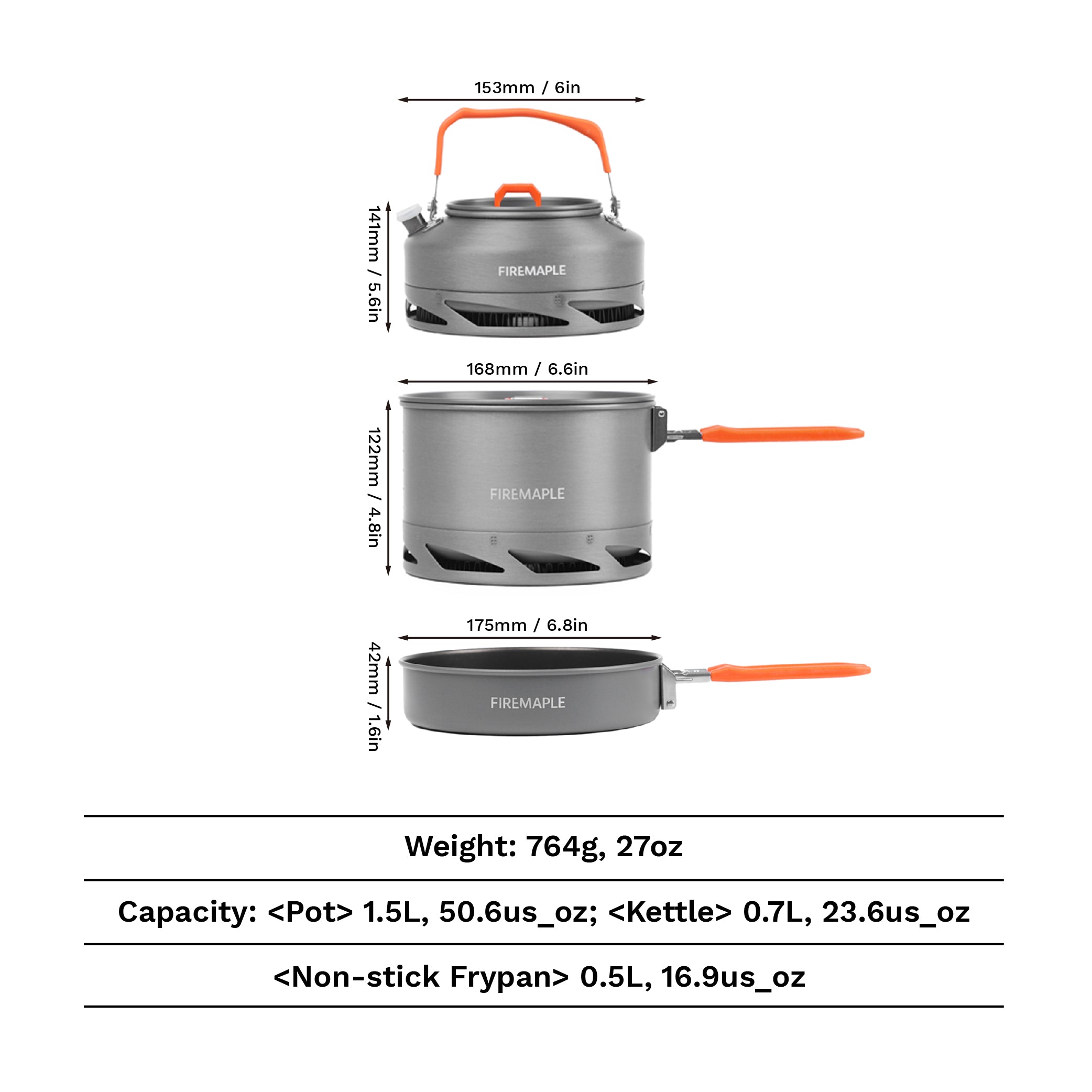 | Frypan | Ø174 × H42 mm (6.8 × 1.6 in), Capacity |